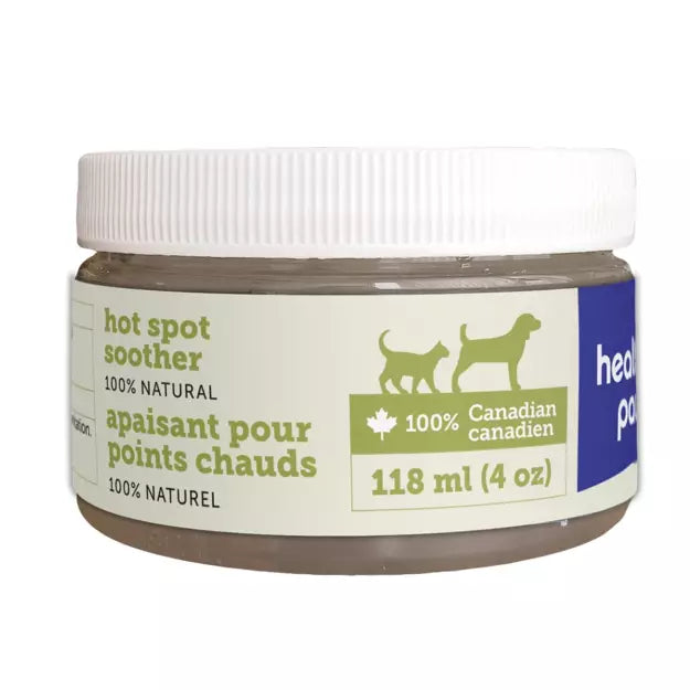 Enriched with witch hazel, Vitamin E, calendula oil and oil of lavender, Healthy Paws Hot Spot Soother is an organic aloe vera gel base that effectively treats hot spots on your pet such as insect bites, hot spots, inflammation & irritation.