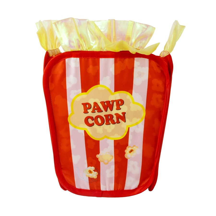 - KONG Play Spaces Pawpcorn is the perfect hideout for scary movie nights! This pop-up Pawpcorn carton provides a den-like space for instinctual hide & seek fun. A top opening lined with popcorn ruffles and dangling crinkly kernel invites biting and batting, while a peek-a-boo window offers blockbuster viewing from the comfort of the bucket. Use upright or on its side. Folds down easily for compact storage.