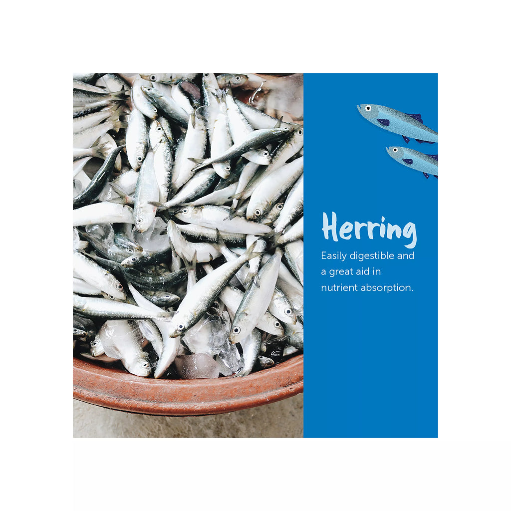 Key Benefits: Herring offers your pal a great source of easy-to-digest healthy protein full of immunity-boosting EPA and DHA fatty acids while the salmon works to further fortify your fur friend's immune system, helps to curb inflammation and gives your pup's coat that healthy sheen.