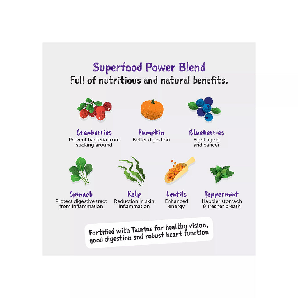 A bowl of Loveabowl is not just irresistibly tasty. We’ve packed our kibbleswith a power blend of six superfoods: blueberries, cranberries, pumpkin, spinach, ginger and kelp, to boost immunity and keep your fur buddy bright-eyed and bushy-tailed. 4. Natural food - no more, no less.