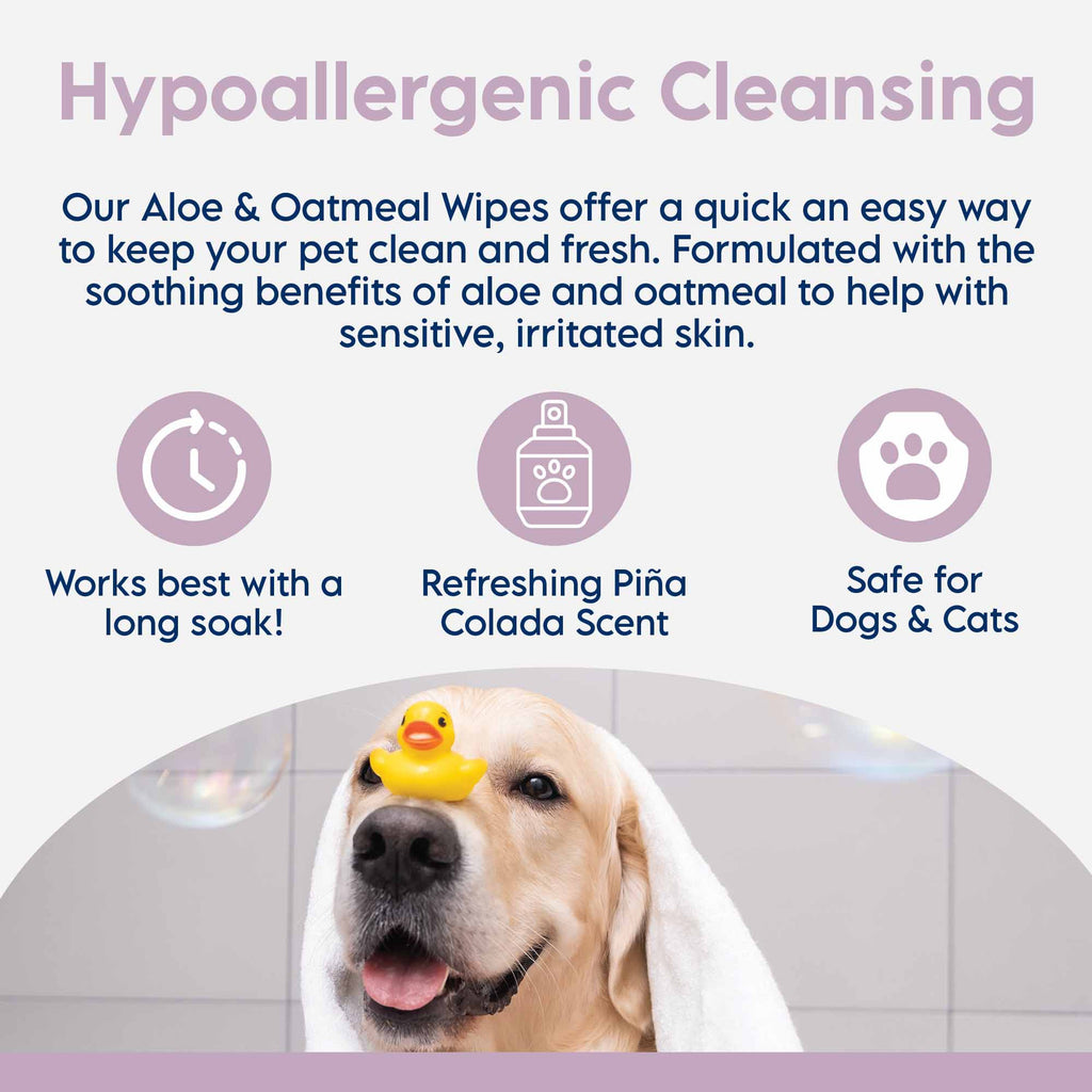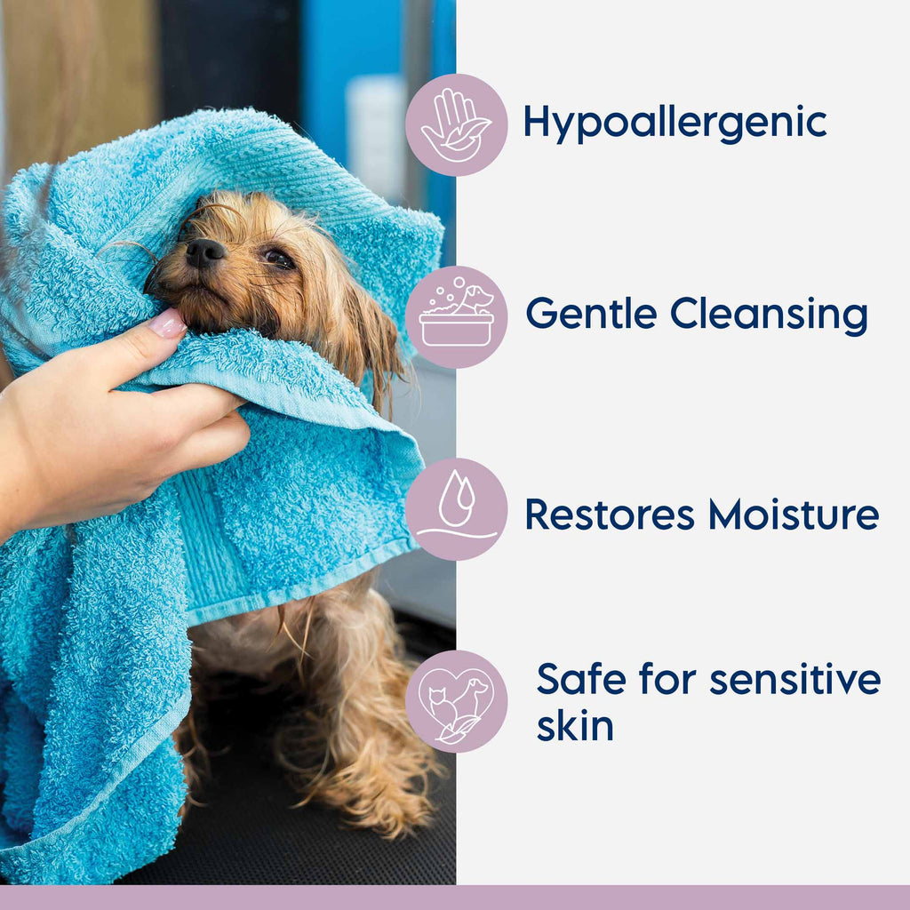 Lyxvara™ Aloe & Oatmeal Shampoo provides soothing relief from itchy, scaling skin and is an excellent solution for pets with sensitive skin. Our Aloe & Oatmeal Shampoo also contains emollients to restore natural moisture to the skin and features a hypoallergenic formulation that won't strip the coat. Our formulation is safe for both dogs and cats and contains aloe vera for added soothing benefits to the skin and coat.