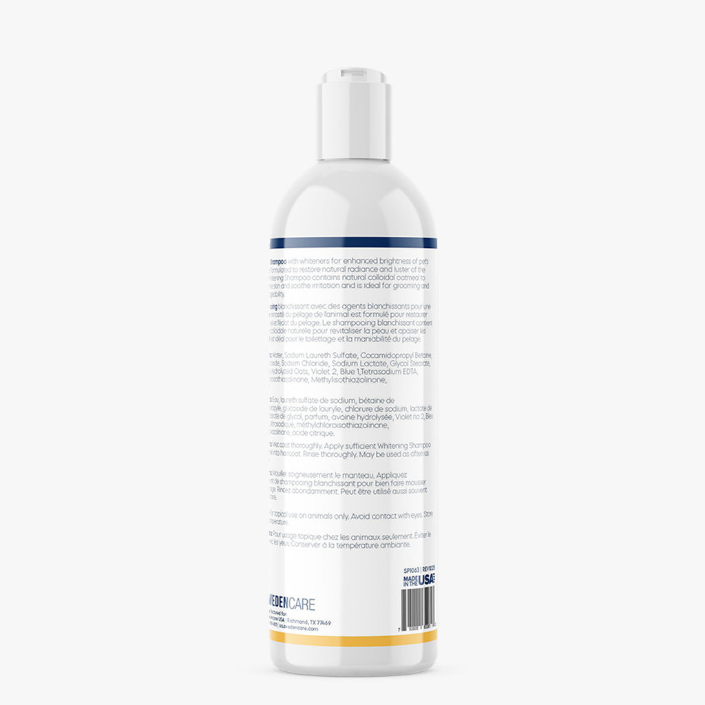 Wet coat thoroughly. Apply sufficient Whitening Shampoo to lather well into the haircoat. Rinse thoroughly. May be used as often as necessary.