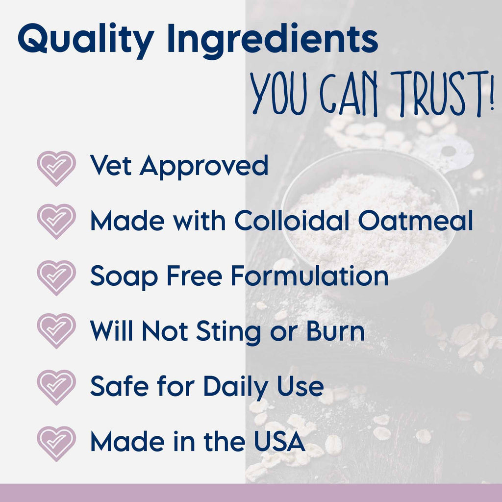 Water, Sodium Laureth Sulfate, Cocamidopropyl Betaine, Lauryl Glucoside, Sodium Chloride, Sodium Lactate, Glycol Stearate, Fragrance, Hydrolyzed Oats, Violet 2, Blue 1, Tetrasodium EDTA, Methylchloroisothiazolinone, Methylisothiazolinone, Citric Acid.