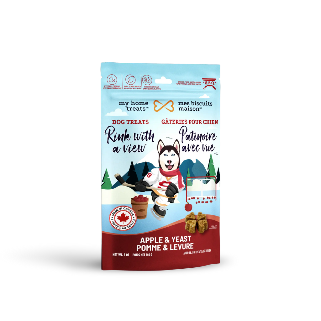 Get out the pucks, hockey sticks, and skates and head to the rink to play hockey with your dog! Here's an applewood smoked hypoallergenic apple-flavored dog treat with nutritional yeast! An apple crumble dog treat!! Your dog will swap the pucks for apples after enjoying these divine creations!