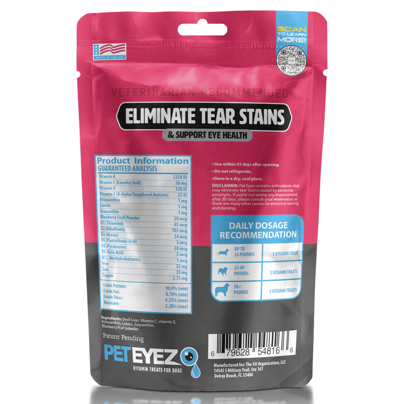 Pet Eyez™ are made with antioxidants and natural ingredients that are safe for pets. Some benefits of using Pet Eyez™ include: