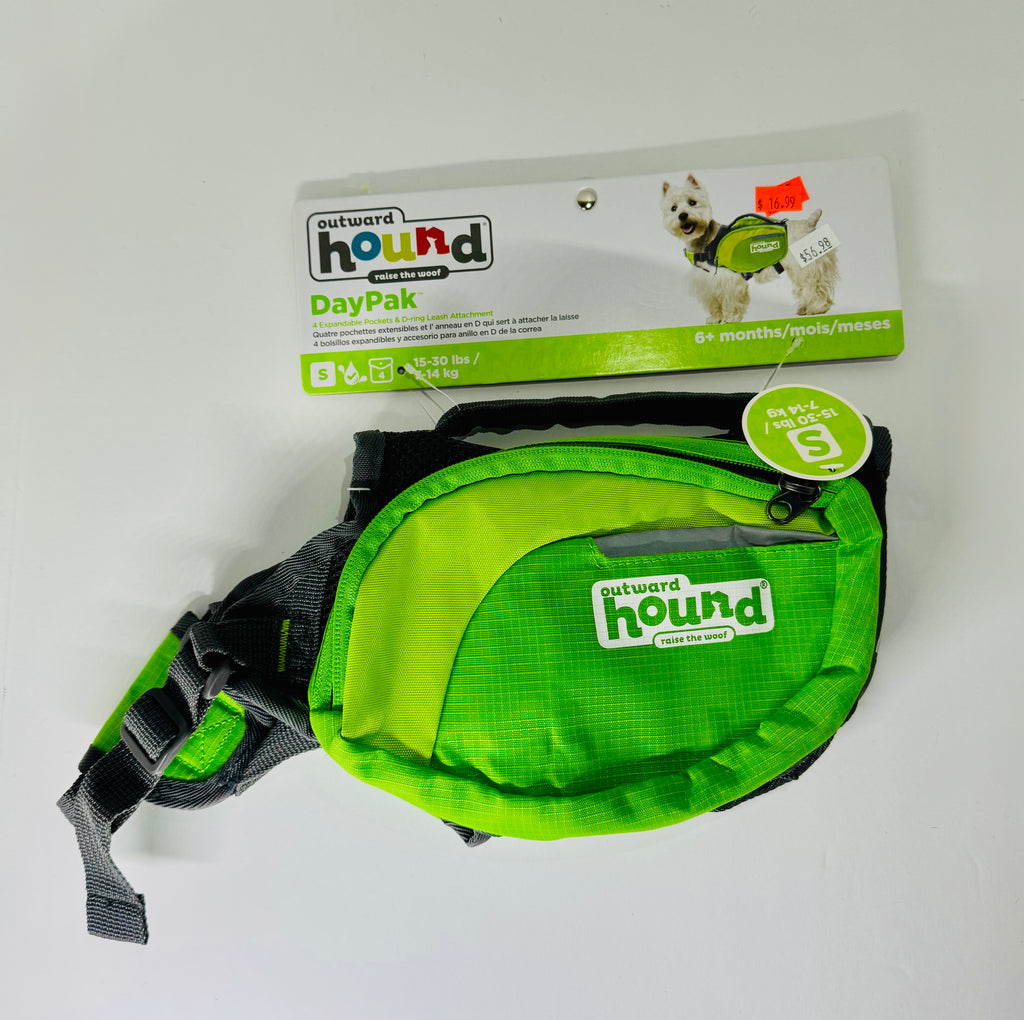 Outward Hound Day pak with 4 expandable pockets and D ring leash attachment. For dogs 15-30 lbs.