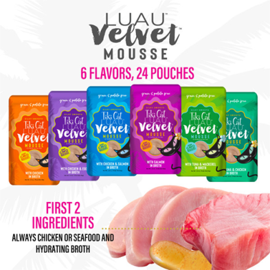 Tiki Cat® Luau Velvet™ provides complete and balanced nutrition in a silky-smooth mousse to satisfy the carnivorous cravings of the most discerning cats.