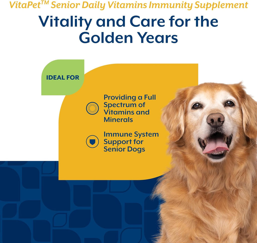 SENIOR CARE - Full spectrum senior dog supplement formula with essential vitamins, minerals, and nutrients that may be missing from a daily diet.