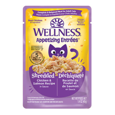 Wellness® Appetizing Entrées™ Shredded Chicken & Salmon Recipe in Sauce Wet Cat Food 1.4oz (NEW)